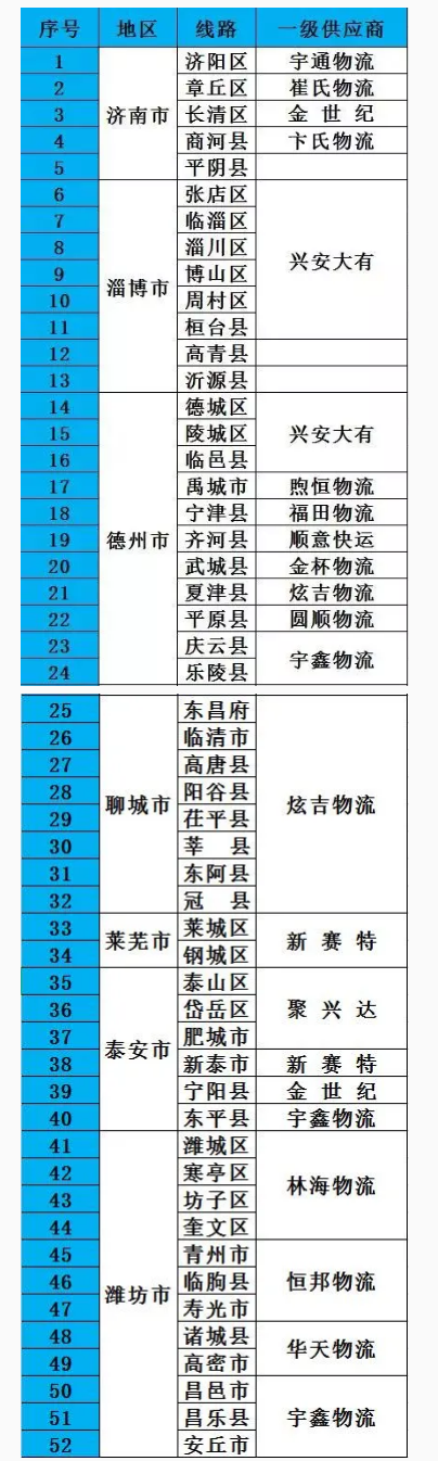 1、濟(jì)南為中心輻射山東所有地、縣級市,直達(dá)線路122條,提升服務(wù)時效的同時降低客戶的運營成本。