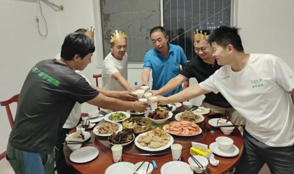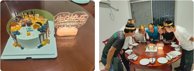 生日會上,公司為壽星們準備了豐盛的餐食和精致的蛋糕,大家圍坐一堂,卸下工作的疲憊,暢聊生活趣事,分享彼此的故事與期待。在眾人的掌聲中,壽星們戴上生日帽,雙手合十許下心愿,隨后共同吹滅蠟燭,用笑容定格這充滿意義的瞬間。