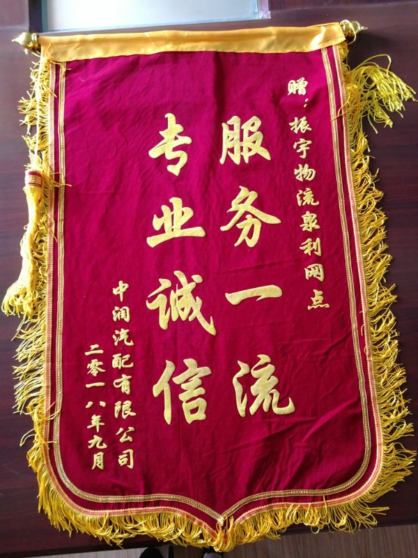振宇物流泉利網(wǎng)點服務(wù)深得贊許,獲中潤汽配有限公司贈送錦旗!