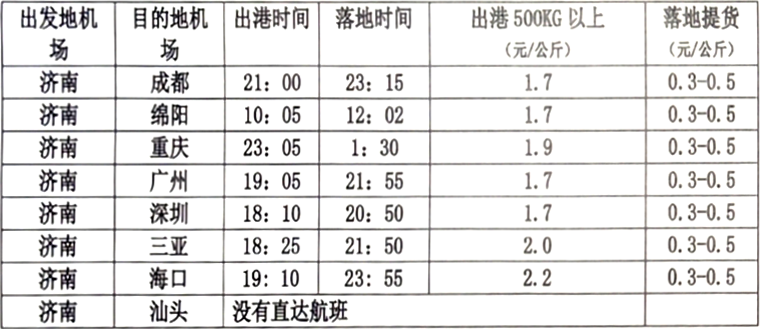 4、出港運(yùn)費(fèi)由濟(jì)南機(jī)場收取,落地提貨費(fèi)各地機(jī)場標(biāo)準(zhǔn)不一,其會(huì)據(jù)實(shí)收取。