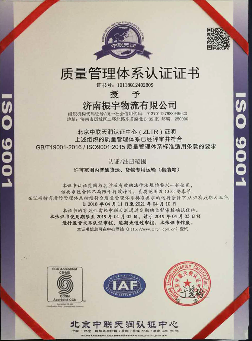 ISO 9001質(zhì)量管理體系認(rèn)證證書(shū)